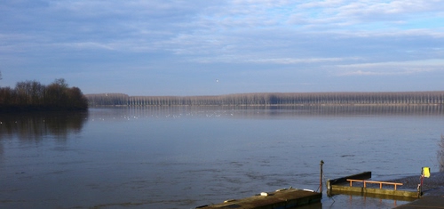 un'ansa del Po e sullo sfondo i pioppi che si perdono a vista d'occhio...
