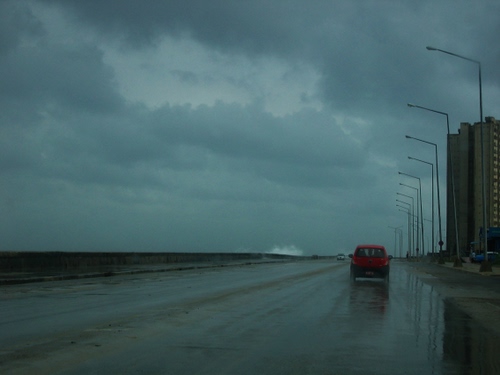 Forte pioggia di novembre su una strada litoranea all'Avana (Cuba).