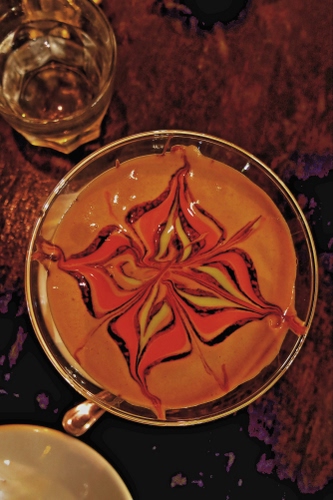 Caffè cremato ed disegnato.