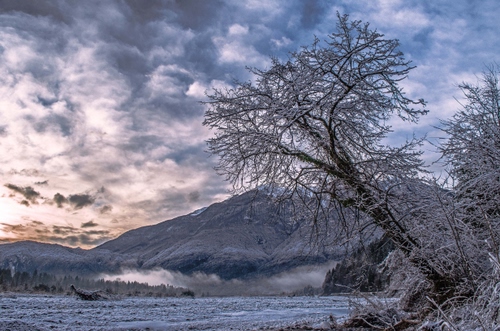 Tag: montagna, nuvole, albero, neve, inverno, gelo, cielo, alberi.