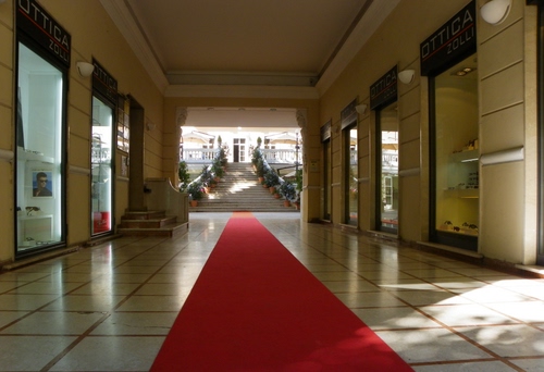 Tappeto rosso che porta alla scalinata.
