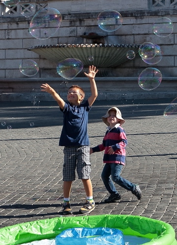 Foto dell'autore romano candidata al contest fotografico bambini su Dizy. Data inserimento: domenica 18 ottobre 2015. Titolo: Inseguendo le bolle