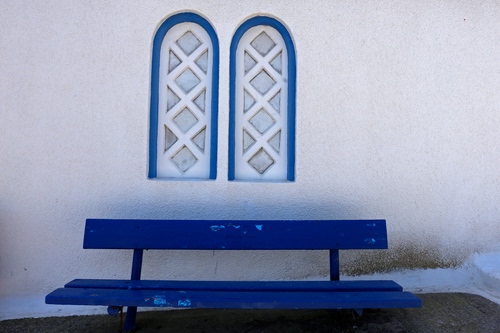 panchina e bifora blu