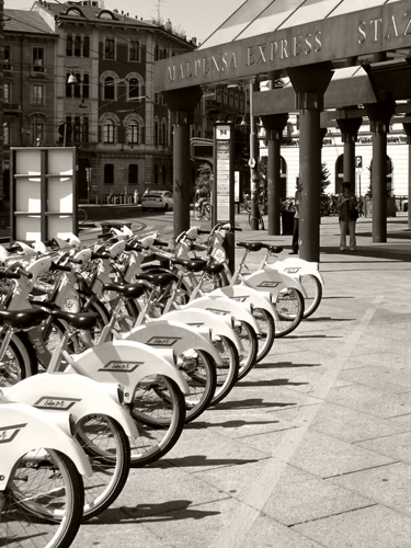 Foto dell'autore mavi80 candidata al contest fotografico bicicletta su Dizy. Data inserimento: mercoledì 12 febbraio 2014. Titolo: In fila in piazza Cadorna