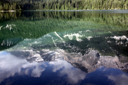 Tag: lago, alberi, montagne, riflessi, riflesso, montagna, nuvole, acqua, verde, cielo.