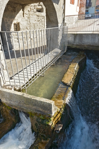 bienno, il borgo dei magli,uno dei borghi più belli d'Italia, in via re, il lavatoio coperto, la ringhiera di protezione è recente per evitare incidenti e probabili vandalismi.