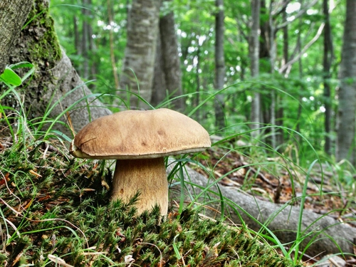 Tag: fungo, alberi, bosco, porcino, muschio, marrone, erba, verde, tronchi.