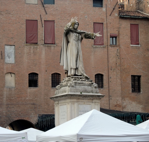 Ferrara - Piazza Savonarola, monumento a Girolamo Savonarola eretto nel 1875 in onore del famoso riformatore nato a Ferrara nel 1452.