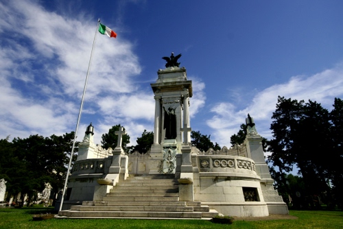 Tag: bandiera, monumento, cielo, nuvole, alberi, scale, scalinata, statue, altare.