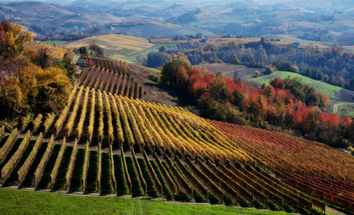 Belli questi filari con i colori autunnali. |