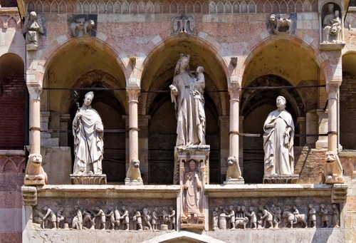 Foto dell'autore carloalberto2013 candidata al contest fotografico statue su Dizy. Data inserimento: mercoledì 8 giugno 2016. Titolo: cattedrale di cremona, il protiro