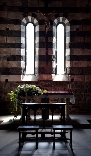 Altri tag (senza riscontro): pietra, nero, rosso, verde, bifora, muro, matrimonio, architettura, romanico, tovaglia, altarino, silenzio, mura, interno, finestra, strisce, aperture, cappella, ceri, ombra.