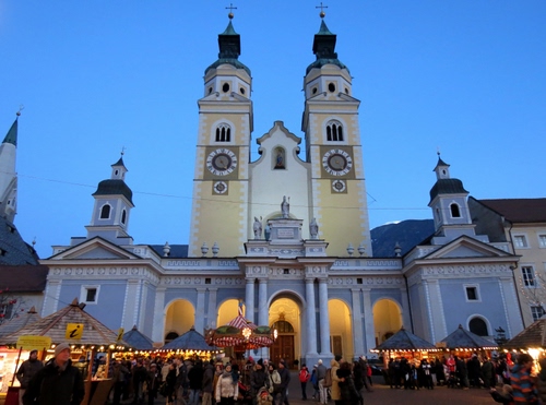 Il Duomo di Bressanone durante il mercatino natalizio