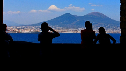 Silhouette di fotografi del Vesuvio