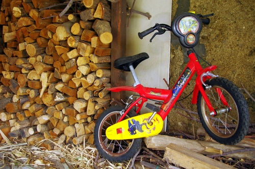 una bici da bimbo troppo nuova per essere dimenticata in legnaia o solo parcheggiata.