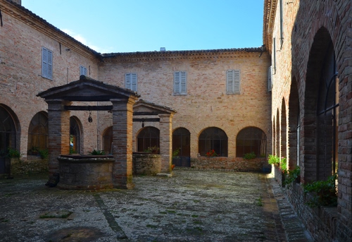 Chiostro presso il Convento-Santuario del Beato Sante fondato nel 1223, in Comune di Mombaroccio (PU).