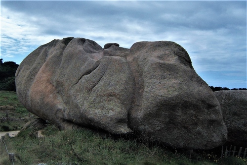 Tag: cielo, masso, erba, nuvole, pietra, sasso, verde, roccia, prato, grigio, alberi, grande, campagna.