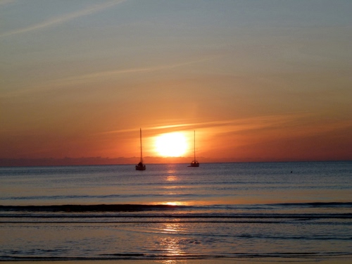 Tag: mare, tramonto, barche, sole, acqua, cielo, onde, orizzonte, due, arancione.