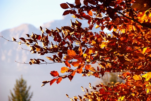 Tag: foglie, autunno, rami, montagne, giallo, albero, rosso.