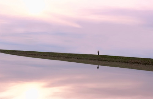 Molto bella questa foto votata poco per me doveva essere più in alto. C'è la solitudine, non c'è niente intorno solo una piccolissima persona che va incontro all'infinito. I colori pastello e le sfumature di luce hanno dato un tocco in più.