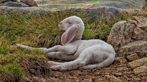 Agnellino fra sassi ed erba