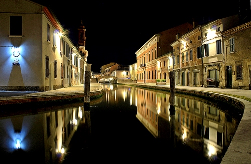 Tag: riflessi, case, luci, finestre, canale, notte, acqua, ponte, notturno, nero, porte, riflesso, pali, palazzi, campanile, rio, fiume, comacchio, lampioni.