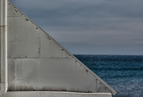 Tag: mare, azzurro, cielo, tubo, triangolo, acqua, orizzonte, muro, grigio, nuvole, diagonale.
