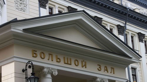 Timpano sopra l'ingresso della Sala Bolscioi, a Mosca.