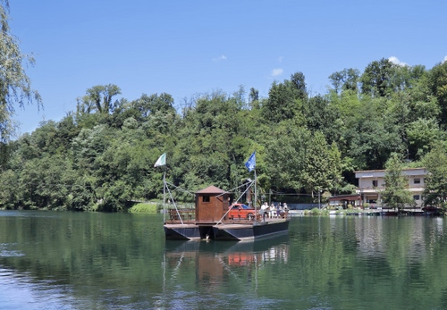 Tag: alberi, traghetto, fiume, verde, bandiere, acqua, cielo, casa, barca, imbarcazione, macchina, azzurro, lago, riflessi, bosco, cabina, chiatta, persone.