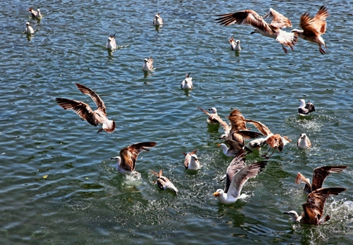 Il becco è giallo e le zampe rosate. La berta si dedica alla ricerca del cibo in gruppi numerosi. Si tuffa in acqua da una decina di metri e cattura le prede sulla superficie o inseguendola sott’acqua. Si ciba di pesci, cefalopodi e crostacei.