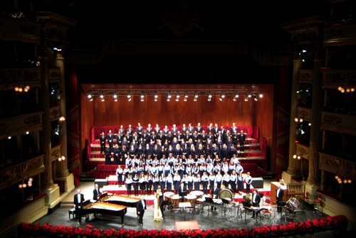 Altri tag (senza riscontro): scala, nero, coda, pianista, tende, faretti, cori, colonne, piano, cantante, abiti, gente, neri, milano, bianchi, tamburi, concerto, musica, scalinata, balconata.