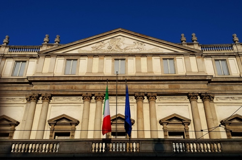 Scorcio della facciata del Teatro alla Scala di Milano.