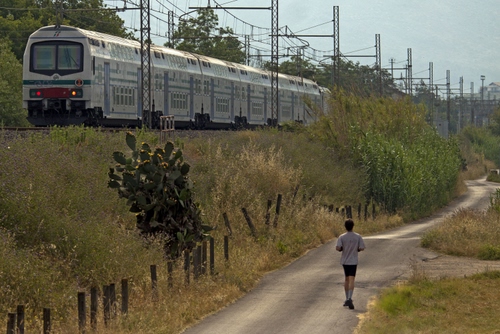 Altri tag (senza riscontro): uomo, binari, via, fili, marciatore, sport, campagna, ragazzo, palificazione, corso, atleta, podista, correre, tralicci, persona.
