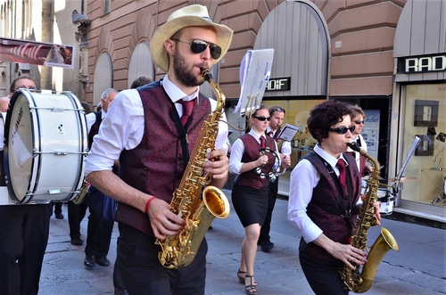 Altri tag (senza riscontro): barba, tromboni, donna, cravatta, tasti, via, donne, corteo, ottoni, porte, artisti, palazzi, spartito, case, uniformi, suonano, braccialetto, divisa, sonagli, oro, leggio, concerto, saxofono, negozi, sassofonisti, mani.