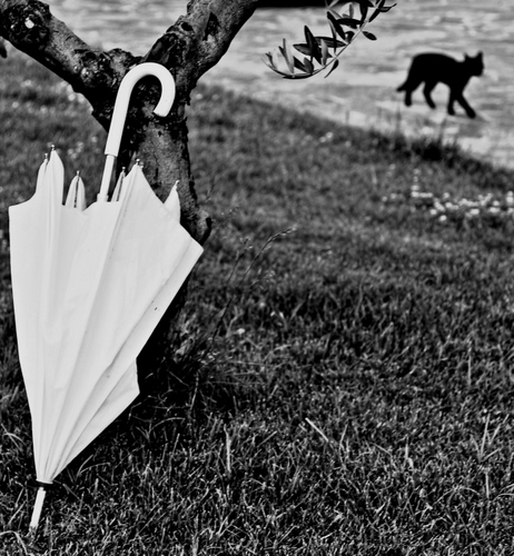 Apprezzo particolarmente le foto istantanee, dove il fotografo riesce a cogliere attimo, qui hai dato anche all'immagine un buon taglio, creando una contrapposizione fra il bianco dell'ombrello e il nero del gatto. Validissima per davvero, per me da prime 20 come minimo.