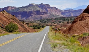Asfalto tra rosse montagne