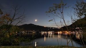 Lago di Garlate, la luna e le luci delle case si riflettono nel lago