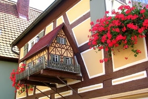 Balcone con gerani rosa