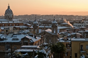 Roma:tramonto con la neve