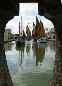 1074° Barche a vela nel porto-canale di Cesenatico, viste dal ponte.