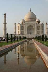 288° Il Taj Mahal riflette le sue cupole nel bacino del giardino.