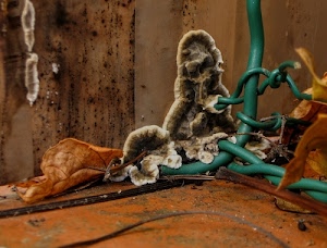 Rete avvolta da formazione di funghi.