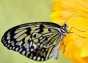 75° Farfalla vera su fiore finto