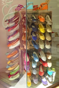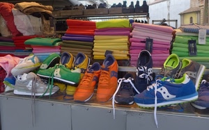 575° Scarpe e sciarpe sul banchetto della fiera