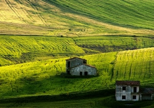 Bel gioco di ombre e luci supportato dal verde primaverile. Valido anche il taglio.