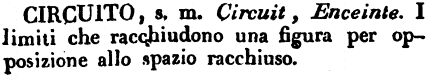 | Circuito - s.m. Circuit, Enceinte. I limiti che racchiudono una figura per opposizione allo spazio racchiuso. [immagine] |