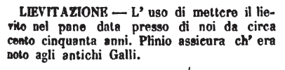| Lievitazione - L'uso di mettere il lievito nel pane data presso di noi da circa cento cinquanta anni. Plinio assicura ch'era noto agli antichi Galli. [immagine] |